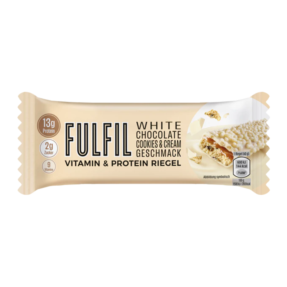 Bock auf ne süße Sünde ohne Reue? Check den Fulfil Proteinriegel mit Chocolate & Hazelnut Flavour! Wir bringen den Game-Changer unter den Snacks direkt zu dir – vollgepackt mit 14 g Protein und nur 2 g Zucker rockt dieser Riegel deine Fitness-Goals. Plus: 9 Vitamine geben dir den Extra-Kick für deinen fitten Lifestyle. It’s not just a snack, itüs your delicious Protein-Boost im 40 g Format – für den Hunger zwischen den Workouts oder unterwegs. Mit crunchy Haselnuss-Stückchen und einer yummy Milchschoko-Coverage, die ganz ohne zusätzlichen auskommt, ist der Riegel die perfekte Combo aus Taste und Performance. Zeig deinem Hunger die Flex-Muscles – mit dem köstlichen Chocolate & Hazelnut Snack, dem echten Soul- und Muscle-Food in Riegelform!